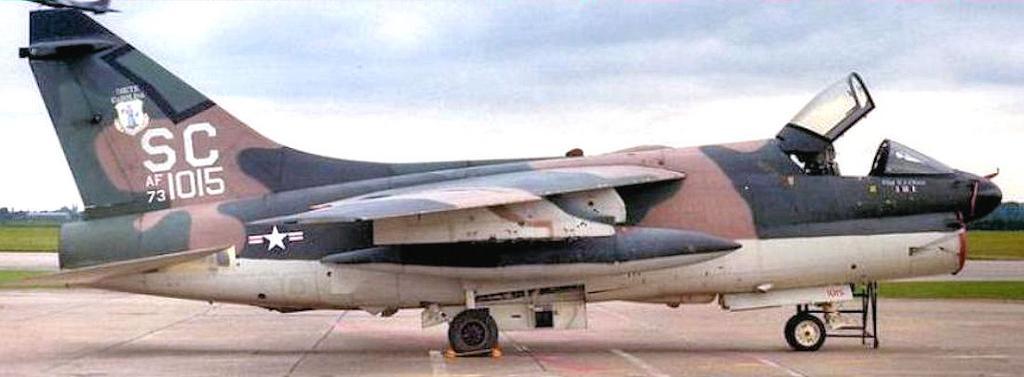 Keywords: 157th Tactical Fighter Squadron A-7D 73-1015.jpg en LTV A-7D S/N 73-1015 of the South Carolina Air National Guard 157th Tactical Fighter Squadron taken on April 18 1975 U S Air Force photo 1972 Aircraft delivered to 355th Tactical Fighter Wing Nellis AFB NV c/n D-161 Transferred to 157th Tactical Fighter Squadron SC Air National Guard 1975 Transferred to 149th Tactical Fighter Squadron VA Air National Guard 1983 Transferred to AMARC 1990; moved to Eglin AFB FL as range target Moved to McEntire ANGB Columbia SC restored and put on static display 1975 http //www nationalmuseum af mil/Upcoming/Photos aspx igphoto 2000571103 United States Air Force other versions PD-USGov DEFAULTSORT Squadron 0157 Uploaded with UploadWizard A-7D Corsair II A-7D Corsair II of the South Carolina Air National Guard |