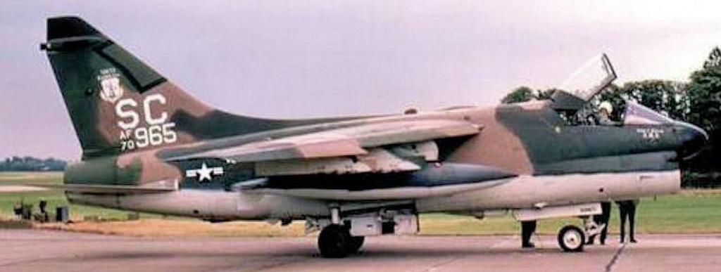 | Keywords: 157th Tactical Fighter Squadron A-7D Corsair II 70-0965.jpg en 157th Tactical Fighter Squadron A-7D Corsair II 70-0965 1972 Aircraft delivered to 354th Tactical Fighter Wing Myrtle Beach AFB SC c/n D-111 Transferred to 157th Tactical Fighter Squadron SC Air National Guard 1975 Transferred to 188th Tactical Fighter Squadron NM Air National Guard 1983 Written Off crashed 45 mi SE of Kirtland AFB Aug 27 1985 1980 United States Air Force United States Air Force other versions DEFAULTSORT Squadron 0157 PD-USGov A-7D Corsair II A-7D Corsair II of the South Carolina Air National Guard Uploaded with UploadWizard |