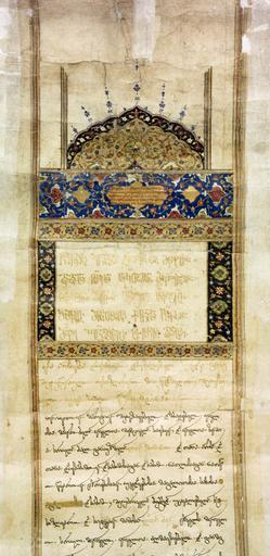 | Keywords: 1597. კახეთის მეფე ალექსანდრე II-ის გუჯარი გარეჯის მეტოქი აკურის მონასტრისადმი.jpg ka 1597 კახეთის მეფე ალექსა დრე II-ის გუჯარი გარეჯის მეტ ქი აკურის მ ასტრისადმი 2009-11-16 http //illuminateddocument ge/ge/album/index/1/georgian Illuminated Historical Documents from Georgian Archives Digitized by the National Center of Manuscripts Tbilisi Georgia PD-Art Uploaded with UploadWizard Alexander II of Kakheti Georgia in the 16th century Mkhedruli royal charters Asomtavruli manuscripts Nuskhuri manuscripts |