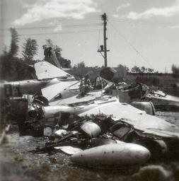 | Keywords: charles daniels charlesdaniels world war two worldwartwo japan lockheed p-38 p38 lightning destroyed wreck outdoor Photo from Charles Daniels Collection Large Album of images taken in Japan after World War Two. Repository: San Diego Air and Space Museum Archive Photo from Charles Daniels Collection Large Album of images taken in Japan after World War Two. Repository: San Diego Air and Space Museum Archive | ||||