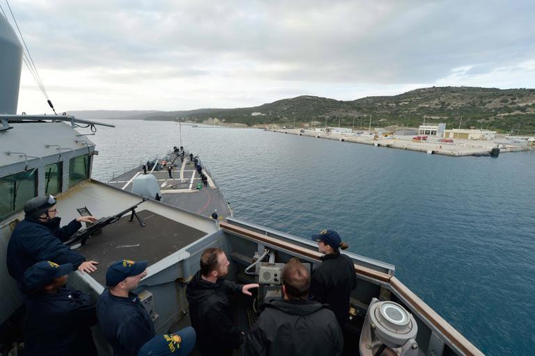 | Keywords: u.s. navy usnavy uss ross (ddg 71) ussrossddg71 outdoor vehicle boat landscape shore seaside 160109-N-XT273-598 SOUDA BAY, Greece (Jan. 9, 2016) Sailors aboard USS Ross (DDG 71) conduct sea and anchor detail before pulling into Souda Bay, Greece Jan. 9, 2016. Ross, an Arleigh Burke-class guided-missile destroyer, forward deployed to Rota, Spain, is conducting a routine patrol in the U.S. 6th Fleet area of operations in support of U.S. national security interests in Europe. (U.S. Navy photo by Mass Communication Specialist 2nd Class Justin Stumberg/Released) 160109-N-XT273-598 SOUDA BAY, Greece (Jan. 9, 2016) Sailors aboard USS Ross (DDG 71) conduct sea and anchor detail before pulling into Souda Bay, Greece Jan. 9, 2016. Ross, an Arleigh Burke-class guided-missile destroyer, forward deployed to Rota, Spain, is conducting a routine patrol in the U.S. 6th Fleet area of operations in support of U.S. national security interests in Europe. (U.S. Navy photo by Mass Communication Specialist 2nd Class Justin Stumberg/Released) |