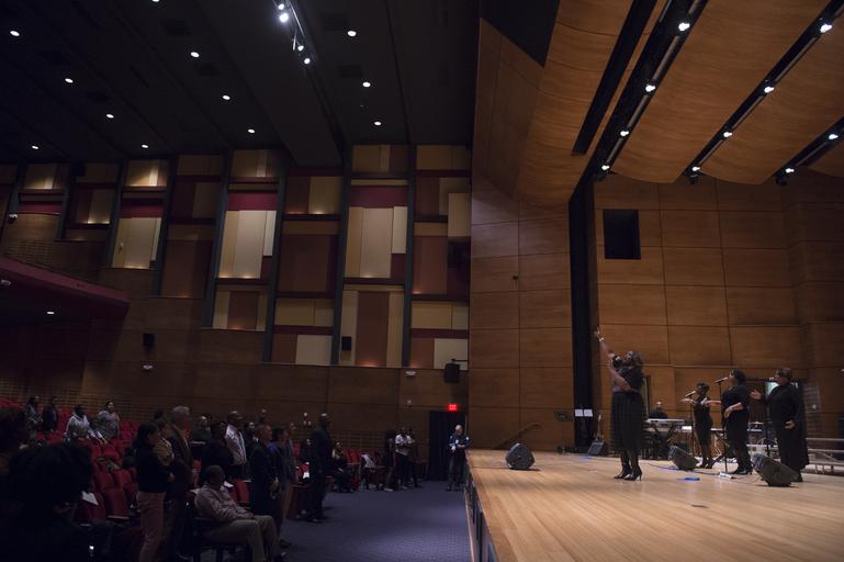 | Keywords: select hall indoor auditorium NEW LONDON, Conn. -- The U.S. Coast Guard Academy Chapel Community hosts the 2016 Gospel Explosion Feb. 6, 2016 featuring performances by Krystal Livingston, Levester Jones and The Pentacostal Tabernacle, and the New London Community Choir, among others. The event is designed to share and highlight the diversity of worship styles within the Gospel music genre. U.S. Coast Guard photo by Petty Officer 2nd Class Cory J. Mendenhall.  NEW LONDON, Conn. -- The U.S. Coast Guard Academy Chapel Community hosts the 2016 Gospel Explosion Feb. 6, 2016 featuring performances by Krystal Livingston, Levester Jones and The Pentacostal Tabernacle, and the New London Community Choir, among others. The event is designed to share and highlight the diversity of worship styles within the Gospel music genre. U.S. Coast Guard photo by Petty Officer 2nd Class Cory J. Mendenhall.   |