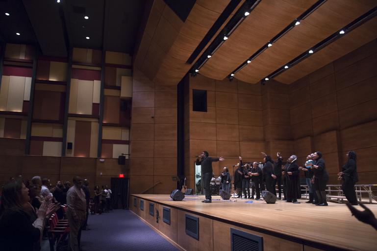 | Keywords: select indoor hall auditorium room NEW LONDON, Conn. -- The U.S. Coast Guard Academy Chapel Community hosts the 2016 Gospel Explosion Feb. 6, 2016 featuring performances by Krystal Livingston, Levester Jones and The Pentacostal Tabernacle, and the New London Community Choir, among others. The event is designed to share and highlight the diversity of worship styles within the Gospel music genre. U.S. Coast Guard photo by Petty Officer 2nd Class Cory J. Mendenhall.  NEW LONDON, Conn. -- The U.S. Coast Guard Academy Chapel Community hosts the 2016 Gospel Explosion Feb. 6, 2016 featuring performances by Krystal Livingston, Levester Jones and The Pentacostal Tabernacle, and the New London Community Choir, among others. The event is designed to share and highlight the diversity of worship styles within the Gospel music genre. U.S. Coast Guard photo by Petty Officer 2nd Class Cory J. Mendenhall.   |