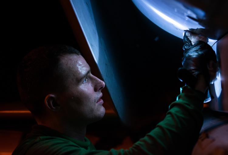 | Keywords: uss john c. stennis ussjohncstennis cvn 74 cvn74 pacific ocean pacificocean indoor 160206-N-BR087-014 PACIFIC OCEAN (Feb. 6, 2016) - Aviation Structural Mechanic 3rd Class Michael Bruesch, from West Bend, Wis., checks for discrepancies on an EA-18G Growler assigned to the Wizards of Electronic Attack Squadron (VAQ) 133 in USS John C. Stennis' (CVN 74) hangar bay. Providing a combat-ready force to protect collective maritime interests, Stennis is operating as part of the Great Green Fleet on a regularly scheduled Western Pacific deployment. (U.S. Navy photo by Mass Communication Specialist Seaman Cole C. Pielop / Released) 160206-N-BR087-014 PACIFIC OCEAN (Feb. 6, 2016) - Aviation Structural Mechanic 3rd Class Michael Bruesch, from West Bend, Wis., checks for discrepancies on an EA-18G Growler assigned to the Wizards of Electronic Attack Squadron (VAQ) 133 in USS John C. Stennis' (CVN 74) hangar bay. Providing a combat-ready force to protect collective maritime interests, Stennis is operating as part of the Great Green Fleet on a regularly scheduled Western Pacific deployment. (U.S. Navy photo by Mass Communication Specialist Seaman Cole C. Pielop / Released) |