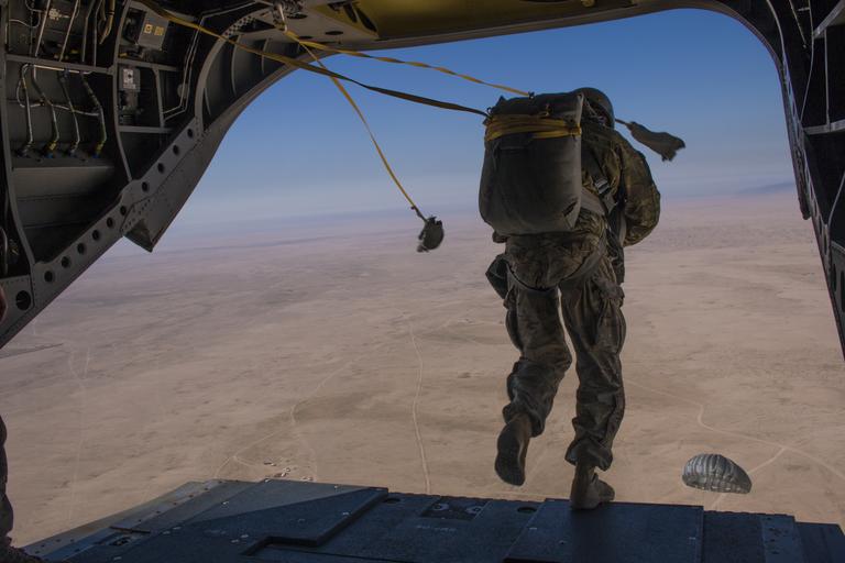 | Keywords: oregon army national guard oregonarmynationalguard washington army national guard washingtonarmynationalguard washington national guard washingtonnationalguard oregon national guard oregonnationalguard california army national guard californiaarmynationalguard california national guard californianationalguard soldier army paradrop parachute 1-168 parachute1168 40th cab 40thcab 40th combat aviation brigade 40thcombataviationbrigade camp buehring campbuehring camp arifjan camparifjan kuwait deployment middle east middleeast kw outdoor U.S. Army Soldiers parachute from a CH-47 Chinook helicopter belonging to Company B, 1st Battalion, 168th Aviation Regiment, 40th Combat Aviation Brigade, during an exercise outside of Camp Buehring, Kuwait, Feb. 17. The 40th CAB controls all Army aviation assets under U.S. Army Central. (U.S. Army photo by Staff Sgt. Ian M. Kummer, 40th Combat Aviation Brigade Public Affairs) U.S. Army Soldiers parachute from a CH-47 Chinook helicopter belonging to Company B, 1st Battalion, 168th Aviation Regiment, 40th Combat Aviation Brigade, during an exercise outside of Camp Buehring, Kuwait, Feb. 17. The 40th CAB controls all Army aviation assets under U.S. Army Central. (U.S. Army photo by Staff Sgt. Ian M. Kummer, 40th Combat Aviation Brigade Public Affairs) |