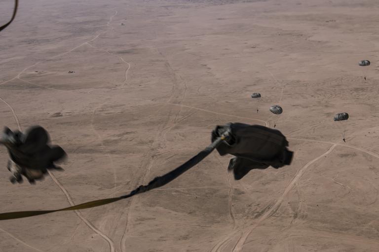 Keywords: oregon army national guard oregonarmynationalguard washington army national guard washingtonarmynationalguard washington national guard washingtonnationalguard oregon national guard oregonnationalguard california army national guard californiaarmynationalguard california national guard californianationalguard soldier army paradrop parachute 1-168 parachute1168 40th cab 40thcab 40th combat aviation brigade 40thcombataviationbrigade camp buehring campbuehring camp arifjan camparifjan kuwait deployment middle east middleeast kw outdoor U.S. Army Soldiers parachute from a CH-47 Chinook helicopter belonging to Company B, 1st Battalion, 168th Aviation Regiment, 40th Combat Aviation Brigade, during an exercise outside of Camp Buehring, Kuwait, Feb. 17. The 40th CAB controls all Army aviation assets under U.S. Army Central. (U.S. Army photo by Staff Sgt. Ian M. Kummer, 40th Combat Aviation Brigade Public Affairs) U.S. Army Soldiers parachute from a CH-47 Chinook helicopter belonging to Company B, 1st Battalion, 168th Aviation Regiment, 40th Combat Aviation Brigade, during an exercise outside of Camp Buehring, Kuwait, Feb. 17. The 40th CAB controls all Army aviation assets under U.S. Army Central. (U.S. Army photo by Staff Sgt. Ian M. Kummer, 40th Combat Aviation Brigade Public Affairs)