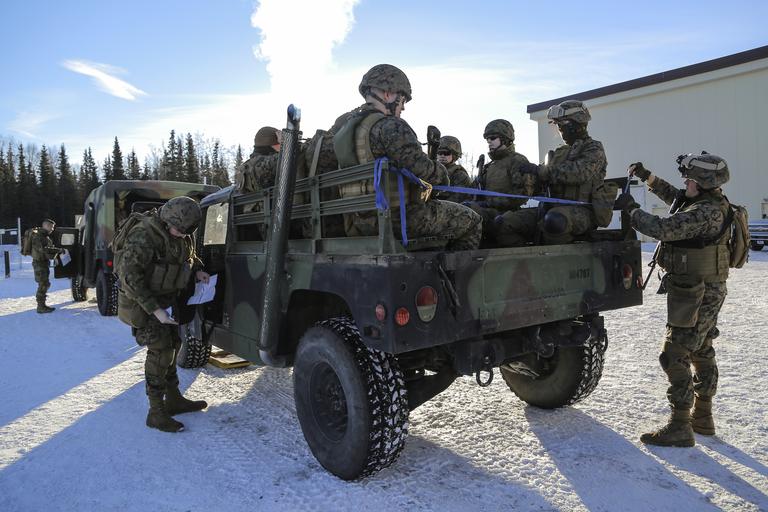 | Keywords: 4th law enforcement battalion 4thlawenforcementbattalion mout military operation on urban terrain militaryoperationonurbanterrain military police militarypolice joint base elmendorf-richardson jointbaseelmendorfrichardson alaska usa us outdoor U.S. Marines assigned to Detachment Military Police Company D, 4th Law Enforcement Battalion, prepare to convoy to Baumeister City military operations on urban terrain (MOUT) complex at Joint Base Elmendorf-Richardson, Alaska, March 6, 2016. The MOUT training prepared the Marines for their upcoming deployment to Serbia where they will serve as military police advisors. (U.S. Air Force photo/Alejandro Peña) U.S. Marines assigned to Detachment Military Police Company D, 4th Law Enforcement Battalion, prepare to convoy to Baumeister City military operations on urban terrain (MOUT) complex at Joint Base Elmendorf-Richardson, Alaska, March 6, 2016. The MOUT training prepared the Marines for their upcoming deployment to Serbia where they will serve as military police advisors. (U.S. Air Force photo/Alejandro Peña) |