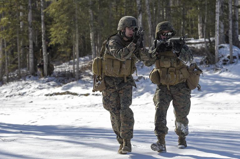 | Keywords: 4th law enforcement battalion 4thlawenforcementbattalion mout military operation on urban terrain militaryoperationonurbanterrain military police militarypolice joint base elmendorf-richardson jointbaseelmendorfrichardson alaska usa us outdoor U.S. Marine Corps Lance Cpls. Nick Ruthruff, left, and Josh Harrison, assigned to Detachment Military Police Company D, 4th Law Enforcement Battalion, assault Baumeister City military operations on urban terrain (MOUT) complex at Joint Base Elmendorf-Richardson, Alaska, March 6, 2016. The MOUT training prepared the Marines for their upcoming deployment to Serbia where they will serve as military police advisors. (U.S. Air Force photo/Alejandro Peña) U.S. Marine Corps Lance Cpls. Nick Ruthruff, left, and Josh Harrison, assigned to Detachment Military Police Company D, 4th Law Enforcement Battalion, assault Baumeister City military operations on urban terrain (MOUT) complex at Joint Base Elmendorf-Richardson, Alaska, March 6, 2016. The MOUT training prepared the Marines for their upcoming deployment to Serbia where they will serve as military police advisors. (U.S. Air Force photo/Alejandro Peña) |