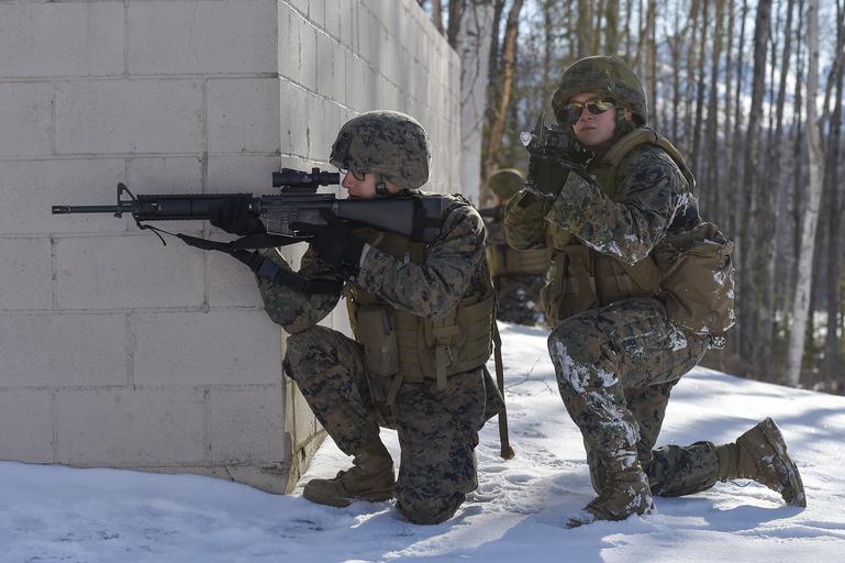| Keywords: 4th law enforcement battalion 4thlawenforcementbattalion mout military operation on urban terrain militaryoperationonurbanterrain military police militarypolice joint base elmendorf-richardson jointbaseelmendorfrichardson alaska usa us animal dog pet outdoor people Marines assigned to Detachment Military Police Company D, 4th Law Enforcement Battalion conduct military operations on urban terrain (MOUT) training at Baumeister City MOUT complex at Joint Base Elmendorf-Richardson, Alaska, March 6, 2016. The training prepared the Marines for their upcoming deployment to Serbia where they will serve as military police advisors. (U.S. Air Force photos/Alejandro Peña) Marines assigned to Detachment Military Police Company D, 4th Law Enforcement Battalion conduct military operations on urban terrain (MOUT) training at Baumeister City MOUT complex at Joint Base Elmendorf-Richardson, Alaska, March 6, 2016. The training prepared the Marines for their upcoming deployment to Serbia where they will serve as military police advisors. (U.S. Air Force photos/Alejandro Peña) |
