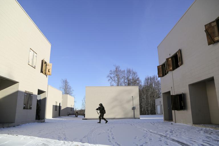 | Keywords: 4th law enforcement battalion 4thlawenforcementbattalion mout military operation on urban terrain militaryoperationonurbanterrain military police militarypolice joint base elmendorf-richardson jointbaseelmendorfrichardson alaska usa us road outdoor architecture Marines assigned to Detachment Military Police Company D, 4th Law Enforcement Battalion conduct military operations on urban terrain (MOUT) training at Baumeister City MOUT complex at Joint Base Elmendorf-Richardson, Alaska, March 6, 2016. The training prepared the Marines for their upcoming deployment to Serbia where they will serve as military police advisors. (U.S. Air Force photos/Alejandro Peña) Marines assigned to Detachment Military Police Company D, 4th Law Enforcement Battalion conduct military operations on urban terrain (MOUT) training at Baumeister City MOUT complex at Joint Base Elmendorf-Richardson, Alaska, March 6, 2016. The training prepared the Marines for their upcoming deployment to Serbia where they will serve as military police advisors. (U.S. Air Force photos/Alejandro Peña) |