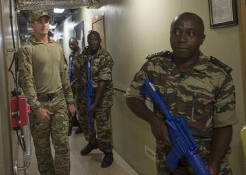 | Keywords: africa partnership station; africa partnership station 2016; aps16; aps; c6f; usns; spearhead; navy; partnership; military sealift command; u.s. navy; navy; africapartnershipstationafricapartnershipstation2016aps16apsc6fusnsspearheadnavypartnershipmilitarysealiftcommandusnavynavy amlep 16 amlep16 usns spearhead (t-epf 1) usnsspearheadtepf1 people indoor 160308-N-WV703-070 GULF OF GUINEA (March 8, 2016) - Maritime Enforcement Specialist 3rd Class Ryan Patterson (left), a member of the U.S. Coast Guard Law Enforcement Detachment, conducts boarding scenario training with Cameroon Sailors aboard USNS Spearhead (T-EPF 1) March 8, 2016. The Military Sealift Command expeditionary fast transport vessel USNS Spearhead is on a scheduled deployment in the U.S. 6th Fleet area of operations to support the international collaborative capacity-building program Africa Partnership Station. (U.S. Navy photo by Mass Communication Specialist 3rd Class Amy M. Ressler/Released) 160308-N-WV703-070 GULF OF GUINEA (March 8, 2016) - Maritime Enforcement Specialist 3rd Class Ryan Patterson (left), a member of the U.S. Coast Guard Law Enforcement Detachment, conducts boarding scenario training with Cameroon Sailors aboard USNS Spearhead (T-EPF 1) March 8, 2016. The Military Sealift Command expeditionary fast transport vessel USNS Spearhead is on a scheduled deployment in the U.S. 6th Fleet area of operations to support the international collaborative capacity-building program Africa Partnership Station. (U.S. Navy photo by Mass Communication Specialist 3rd Class Amy M. Ressler/Released) |