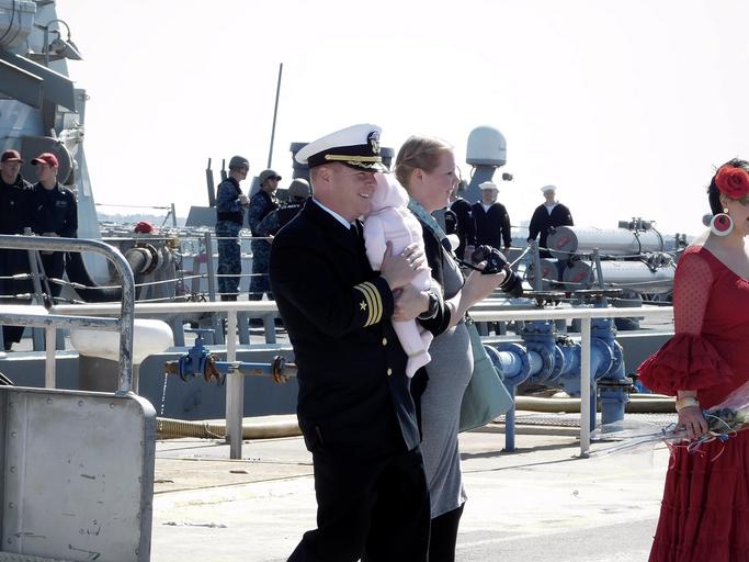 | Keywords: outdoor 160313-N-MG056-104 NAVAL STATION ROTA, Spain (March 13, 2016) USS Carney (DDG 64) executive officer, Cmdr. Peter Halvorsen greets his family after a four-month patrol in in the U.S. 6th Fleet area of operations. Carney, an Arleigh Burke-class guided-missile destroyer, forward deployed to Rota, Spain, completed a routine patrol in the U. S. 6th Fleet area of operations in support of U.S. national security interests in Europe. (U.S. Navy photo By Krysta Murray/released) 160313-N-MG056-104 NAVAL STATION ROTA, Spain (March 13, 2016) USS Carney (DDG 64) executive officer, Cmdr. Peter Halvorsen greets his family after a four-month patrol in in the U.S. 6th Fleet area of operations. Carney, an Arleigh Burke-class guided-missile destroyer, forward deployed to Rota, Spain, completed a routine patrol in the U. S. 6th Fleet area of operations in support of U.S. national security interests in Europe. (U.S. Navy photo By Krysta Murray/released) |