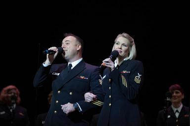 | Keywords: albany beth revell bethrevell michael webb michaelwebb music navy navy band navyband new york newyork palace theatre palacetheatre sea chanters seachanters navybandtour indoor ALBANY N.Y. (April 11, 2016) Chief Musician Beth Revell and Musician 1st Class Michael Webb perform a duet with the Sea Chanters chorus. The Sea Chanters are on a 22-day tour of the northeastern United States. (U.S. Navy photo by Musician 1st Class Sarah Blecker/Released) ALBANY N.Y. (April 11, 2016) Chief Musician Beth Revell and Musician 1st Class Michael Webb perform a duet with the Sea Chanters chorus. The Sea Chanters are on a 22-day tour of the northeastern United States. (U.S. Navy photo by Musician 1st Class Sarah Blecker/Released) |