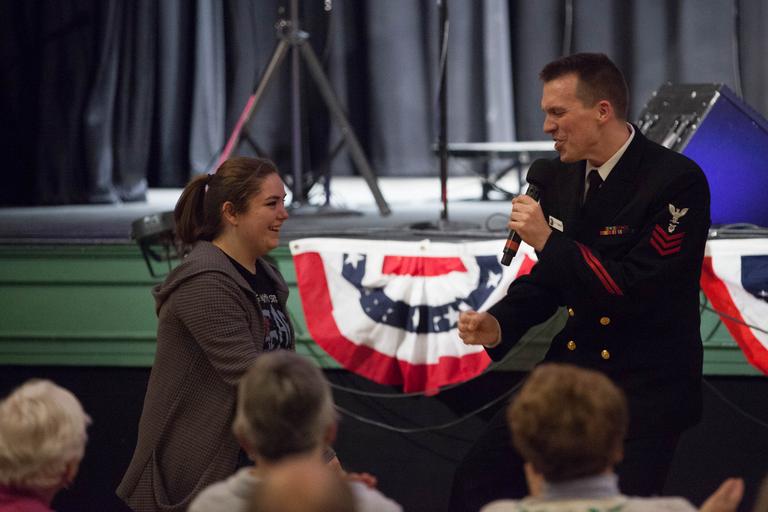 | Keywords: bill edwards billedwards manchester motown music navy navy band navyband new hampshire newhampshire sea chanters seachanters navybandtour MANCHESTER, N.H. (April 15, 2016) Musician 1st Class Bill Edwards dances with a member of the audience during a medley of Motown hits. The Sea Chanters are on a 22-day tour of the northeastern United States. (U.S. Navy photo by Musician 1st Class Sarah Blecker/Released) MANCHESTER, N.H. (April 15, 2016) Musician 1st Class Bill Edwards dances with a member of the audience during a medley of Motown hits. The Sea Chanters are on a 22-day tour of the northeastern United States. (U.S. Navy photo by Musician 1st Class Sarah Blecker/Released) |