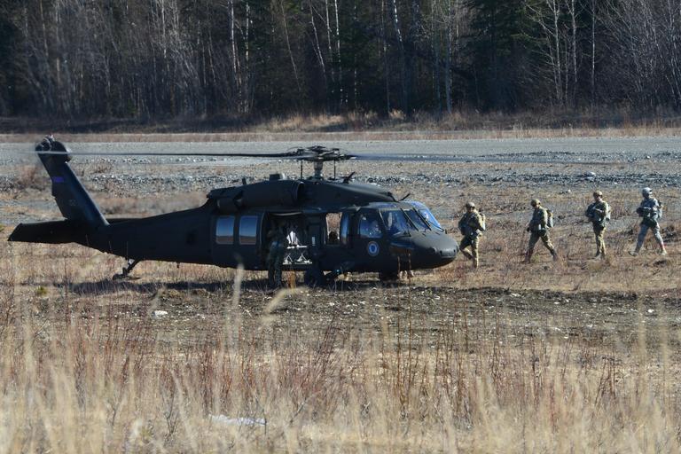 Keywords: joint base elmendorf-richardson jointbaseelmendorfrichardson alaska usa outdoor Airmen and Soldiers perform static and free-fall parachute jumps out of UH-60 Black Hawk helicopters as part of Grizzly Breakup, a training exercise, at Malemute drop zone, Joint Base Elmendorf-Richardson, Alaska, April 18, 2016. Grizzly Breakup is a week-long operation where service members from seven special operations units, spanning multiple installations, participate in parachute jumps out of Black Hawks and C-17 Globemaster IIIs. Airmen and Soldiers perform static and free-fall parachute jumps out of UH-60 Black Hawk helicopters as part of Grizzly Breakup, a training exercise, at Malemute drop zone, Joint Base Elmendorf-Richardson, Alaska, April 18, 2016. Grizzly Breakup is a week-long operation where service members from seven special operations units, spanning multiple installations, participate in parachute jumps out of Black Hawks and C-17 Globemaster IIIs.