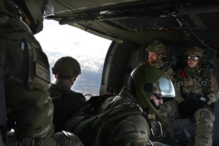 | Keywords: joint base elmendorf-richardson jointbaseelmendorfrichardson alaska usa Airmen and Soldiers perform static and free-fall parachute jumps out of UH-60 Black Hawk helicopters as part of Grizzly Breakup, a training exercise, at Malemute drop zone, Joint Base Elmendorf-Richardson, Alaska, April 18, 2016. Grizzly Breakup is a week-long operation where service members from seven special operations units, spanning multiple installations, participate in parachute jumps out of Black Hawks and C-17 Globemaster IIIs. Airmen and Soldiers perform static and free-fall parachute jumps out of UH-60 Black Hawk helicopters as part of Grizzly Breakup, a training exercise, at Malemute drop zone, Joint Base Elmendorf-Richardson, Alaska, April 18, 2016. Grizzly Breakup is a week-long operation where service members from seven special operations units, spanning multiple installations, participate in parachute jumps out of Black Hawks and C-17 Globemaster IIIs. |