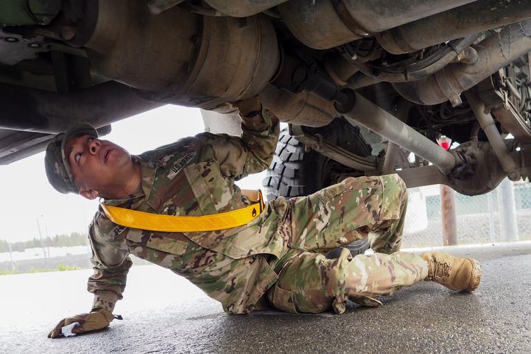 | Keywords: soldiers; army; u.s. army; u.s. army alaska; usarpac; u.s. army soldiersarmyusarmyusarmyalaskausarpacusarmy soldiers; army; u.s. army; u.s. army alaska; usarpac; u.s. army pacific; 17th cssb; 17th combat sustainment support battalion; command maintenance; pmcs; soldiersarmyusarmyusarmyalaskausarpacusarmypacific17thcssb17thcombatsustainmentsupportbattalioncommandmaintenancepmcs Army Staff Sgt. Rudy Flores, assigned to the 17th Combat Sustainment Support Battalion, U.S. Army Alaska, performs command maintenance, and Preventive Maintenance Checks and Services on one of his unit's vehicles, Monday, May 9, 2016. A decisively executed command maintenance program is a multi-echelon training event that focuses on various battlefield operating systems, provides feedback to the commander on the combat readiness of unit equipment, and, gives Soldiers confidence in their vehicles, weapons, and personal equipment through successful PMCS. (U.S. Air Force photo/Justin Connaher) Army Staff Sgt. Rudy Flores, assigned to the 17th Combat Sustainment Support Battalion, U.S. Army Alaska, performs command maintenance, and Preventive Maintenance Checks and Services on one of his unit's vehicles, Monday, May 9, 2016. A decisively executed command maintenance program is a multi-echelon training event that focuses on various battlefield operating systems, provides feedback to the commander on the combat readiness of unit equipment, and, gives Soldiers confidence in their vehicles, weapons, and personal equipment through successful PMCS. (U.S. Air Force photo/Justin Connaher) |