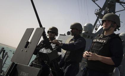 Keywords: uss porter (ddg 78) ussporterddg78 suez canal suezcanal foc'sle focsle .50-caliber machine gun 50calibermachinegun people 160510-N-FQ994-019 SUEZ CANAL (May 10, 2016) Sailors man a .50-caliber machine gun during small craft action team watch aboard USS Porter (DDG 78) as the ship transits the Suez Canal May 10, 2016. Porter, an Arleigh Burke-class guided-missile destroyer, forward-deployed to Rota, Spain, is conducting a routine patrol in the U.S. 6th Fleet area of operations in support of U.S. national security interests in Europe. (U.S. Navy Photo by Mass Communication Specialist 3rd Class Robert S. Price/Released) 160510-N-FQ994-019 SUEZ CANAL (May 10, 2016) Sailors man a .50-caliber machine gun during small craft action team watch aboard USS Porter (DDG 78) as the ship transits the Suez Canal May 10, 2016. Porter, an Arleigh Burke-class guided-missile destroyer, forward-deployed to Rota, Spain, is conducting a routine patrol in the U.S. 6th Fleet area of operations in support of U.S. national security interests in Europe. (U.S. Navy Photo by Mass Communication Specialist 3rd Class Robert S. Price/Released) |