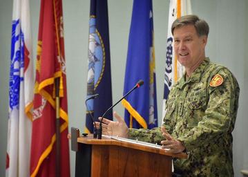 | Keywords: 160511-N-RI884-011 160511-N-RI884-011.jpg en 160511-N-RI884-011 NAPLES Italy May 11 2016 Adm Mark Ferguson commander of U S Naval Forces Europe-Africa speaks to service members and civilians during the National Day of Prayer at Naval Support Activity Naples May 11 2016 The event commemorated the National Day of Prayer an observance formally set by President Ronald Reagan in 1988 U S Naval Forces Europe-Africa headquartered in Naples Italy oversees joint and naval operations often in concert with allied joint and interagency partners in order to advance U S national interests security and stability in Europe and Africa U S Navy photo by Mass Communication Specialist 1st Class Daniel Barker/Released Unit Navy Media Content Services DVIDS Tags Naples; Prayer; Breakfast; Ferguson; NMCS; DVIDS Bulk Import 2016-05-10 Petty Officer 2nd Class Daniel Barker https //www dvidshub net/image/2592993/160511-n-ri884-011 160511-N-RI884-011 2016-05-17 00 08 PD-USGov-Military-Navy Mark E Ferguson III Images from DoD uploaded by Fæ |