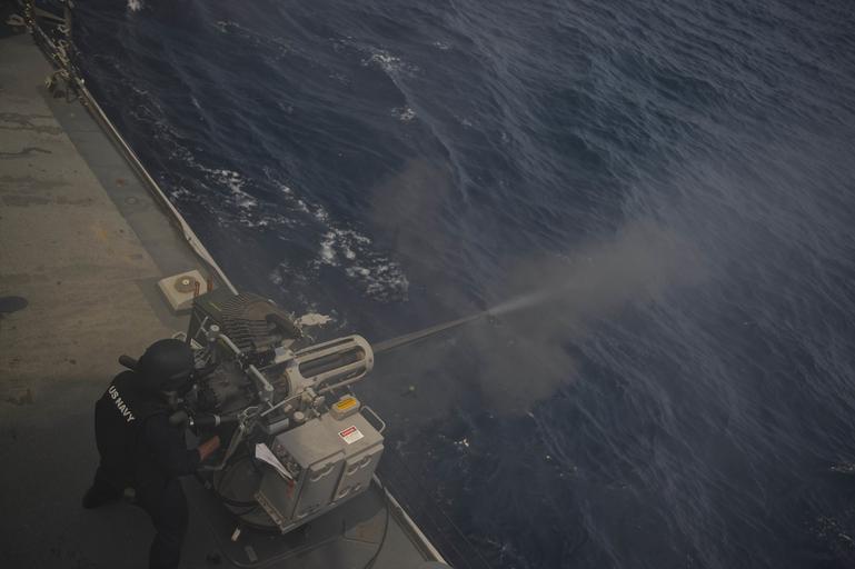 | Keywords: 160521-N-QC631-301 160521-N-QC631-301.jpg  en 160521-N-QC631-301 WATERS SURROUNDING THE KOREAN PENINSULA May 21 2016 Gunner ™s Mate 2nd Class Ryan Stewart fires a MK 38 25MM machine gun during gunnery exercises aboard the guided-missile destroyer USS Decatur DDG 73 Decatur along with USS Momsen DDG 92 and USS Spruance DDG 111 with embarked Devil Fish and Warbirds detachments of Helicopter Maritime Strike Squadron HSM 49 are deployed as part of a U S 3rd Fleet Pacific Surface Action Group PAC SAG under Destroyer Squadron CDS 31 U S Navy photo by Mass Communication Specialist 3rd Class Gerald Dudley Reynolds/Released <br>Unit Navy Media Content Services 2016-05-21 Petty Officer 3rd Class Gerald Dudley Reynolds https //www dvidshub net/image/2626360/160521-n-qc631-301 160521-N-QC631-301 2016-06-01 00 03 WA PD-USGov-Military-Navy Aboard USS Decatur DDG-73 Images from DoD uploaded by Fæ |