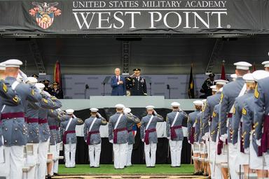 | Keywords: sport team sport The U.S. Military Academy Class of 2016 graduated and commissioned as second lieutenants into the U.S. Army May 21 in front of a packed-crowd at Michie Stadium. Nine hundred and fifty-three cadets graduated, which represented approximately 78 percent of the cadets who entered West Point in the summer of 2012. Vice President Joe Biden was the graduation speaker. This is the 218th graduating class of West Point. This class included 151 women, 77 Hispanics, 71 Asian/Pacific Islanders, 69 African-Americans and 12 Native Americans. The class also had 25 combat veterans (24 male, one female). (U.S. Army photo by: Staff Sgt. Vito T. Bryant) The U.S. Military Academy Class of 2016 graduated and commissioned as second lieutenants into the U.S. Army May 21 in front of a packed-crowd at Michie Stadium. Nine hundred and fifty-three cadets graduated, which represented approximately 78 percent of the cadets who entered West Point in the summer of 2012. Vice President Joe Biden was the graduation speaker. This is the 218th graduating class of West Point. This class included 151 women, 77 Hispanics, 71 Asian/Pacific Islanders, 69 African-Americans and 12 Native Americans. The class also had 25 combat veterans (24 male, one female). (U.S. Army photo by: Staff Sgt. Vito T. Bryant) |