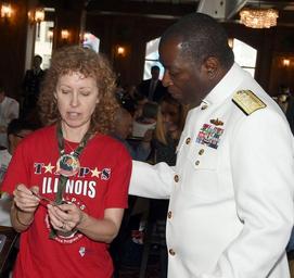 Keywords: 160528-N-IK959-071 160528-N-IK959-071.jpg en 160528-N-IK959-071 CHICAGO May 28 2016 Rear Adm Stephen C Evans commander of Naval Service Training Command NSTC talks with Nancy Ebbers the mother of U S Army Pvt James Henry Ebbers from Oak Lawn Illinois during a Gold Star Family breakfast in the Walnut Room of Macy ™s Department Store before the Chicago Memorial Day Parade here May 28 Ebbers died during Operation Enduring Freedom in 2002 Evans joined Chicago Mayor Rahm Emanuel U S government representatives and military flag and senior officers to commemorate the day and remember service members who gave the ultimate sacrifice during their service to the United States and during America ™s wars U S Navy photo by Scott A Thornbloom/Released Unit Navy Media Content Services 2016-05-28 Scottt Thornbloom https //www dvidshub net/image/2629895/160528-n-ik959-071 160528-N-IK959-071 2016-06-02 00 02 CHICAGO IL US PD-USGov-Military-Navy Operation Enduring Freedom Images from DoD uploaded by Fæ |