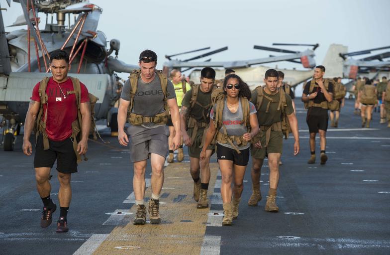 MAKE A MEME View Large Image 160528-N-KR961-134 160528-N-KR961-134.jpg en 160528-N-KR961-134 GULF OF ADEN May 28 2016 Sailors and Marines aboard amphibious assault ship USS Boxer LHD 4 participate in a Memorial Day sunrise ruck march on the flight deck Boxer is the ...
