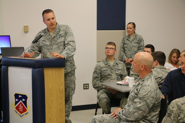 | Keywords: ohio air national guard ohioairnationalguard 179th airlift wing 179thairliftwing air guard airguard 200th red horse 200thredhorse red horse redhorse air national guard airnationalguard mansfield oh us indoor people Vice Commander of the 179th Airlift Wing, Col. Dan Tack speaks to Ohio Air National Guardsmen from the 179th Airlift Wing and 200th RED HORSE, Mansfield, Ohio, gathered at the 179th Dining Facility for a luncheon for departing Wing Commander, Col. Gary McCue, June 2, 2016. (U.S. Air National Guard photo by Tech. Sgt. Joe Harwood\Released) Vice Commander of the 179th Airlift Wing, Col. Dan Tack speaks to Ohio Air National Guardsmen from the 179th Airlift Wing and 200th RED HORSE, Mansfield, Ohio, gathered at the 179th Dining Facility for a luncheon for departing Wing Commander, Col. Gary McCue, June 2, 2016. (U.S. Air National Guard photo by Tech. Sgt. Joe Harwood\Released) |