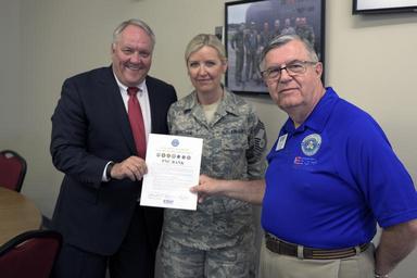 | Keywords: air force airforce usaf air national guard airnationalguard ang national guard nationalguard ngb 182 airlift wing airliftwing peoria illinois always on mission alwaysonmission airmen esgr civilian employer support guard reserve breakfast boss comrel community relations il usa us people Doug Stewart, left, a regional president with PNC Bank, U.S. Air Force Chief Master Sgt. Kelly Cunningham, center, a superintendent with the 183rd Air Operations Group, and Ron Bacci, the chair of the Illinois Employer Support of the Guard and Reserve field committee, pose after signing a pledge of support during an ESGR “Breakfast with the Boss” event at the 182nd Airlift Wing, Peoria, Ill., June 8, 2016. Stewart and civilian employers toured the base to see firsthand how their employees serve the Illinois National Guard. (U.S. Air National Guard photo by Staff Sgt. Lealan Buehrer) Doug Stewart, left, a regional president with PNC Bank, U.S. Air Force Chief Master Sgt. Kelly Cunningham, center, a superintendent with the 183rd Air Operations Group, and Ron Bacci, the chair of the Illinois Employer Support of the Guard and Reserve field committee, pose after signing a pledge of support during an ESGR “Breakfast with the Boss” event at the 182nd Airlift Wing, Peoria, Ill., June 8, 2016. Stewart and civilian employers toured the base to see firsthand how their employees serve the Illinois National Guard. (U.S. Air National Guard photo by Staff Sgt. Lealan Buehrer) |
