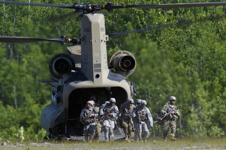 | Keywords: soldiers; army; u.s. army; u.s. army alaska; usarpac; u.s. army soldiersarmyusarmyusarmyalaskausarpacusarmy joint base elmendorf-richardson jointbaseelmendorfrichardson alaska usa soldiers; army; u.s. army; u.s. army alaska; usarpac; u.s. army pacific; airborne; paratroopers; jgsdf; japanese ground self-defense force; arctic aurora; pacific partnership; pacom; pacific command soldiersarmyusarmyusarmyalaskausarpacusarmypacificairborneparatroopersjgsdfjapanesegroundselfdefenseforcearcticaurorapacificpartnershippacompacificcommand outdoor Paratroopers assigned to the 3rd Battalion, 509th Parachute Infantry Regiment, 4th Infantry Brigade Combat Team (Airborne), 25th Infantry Division, U.S. Army Alaska, disembark from a CH-47 Chinook helicopter for training with Japan Ground Self-Defense Force paratroopers at Joint Base Elmendorf-Richardson, Alaska, June 9, 2016, during Exercise Arctic Aurora. Arctic Aurora is a yearly bilateral training exercise involving elements of the Spartan Brigade and the JGSDF, which focuses on strengthening ties between the two by executing combined small unit airborne proficiency operations and basic small arms marksmanship. (U.S. Air Force photo/Justin Connaher) Paratroopers assigned to the 3rd Battalion, 509th Parachute Infantry Regiment, 4th Infantry Brigade Combat Team (Airborne), 25th Infantry Division, U.S. Army Alaska, disembark from a CH-47 Chinook helicopter for training with Japan Ground Self-Defense Force paratroopers at Joint Base Elmendorf-Richardson, Alaska, June 9, 2016, during Exercise Arctic Aurora. Arctic Aurora is a yearly bilateral training exercise involving elements of the Spartan Brigade and the JGSDF, which focuses on strengthening ties between the two by executing combined small unit airborne proficiency operations and basic small arms marksmanship. (U.S. Air Force photo/Justin Connaher) |