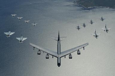 Keywords: air force airforce air power airpower aircraft america b-52 b52 baltic operations 2016 balticoperations2016 baltic sea balticsea baltops baltops 2016 baltops2016 eurofighter typhoon eurofightertyphoon f-16 f16 fighting falcon fightingfalcon german air force germanairforce germany gripen poland polish air force polishairforce sweden swedish air force swedishairforce u.s. us u.s. air force usairforce pl outdoor text A U.S. Air Force B-52 Stratofortress leads a formation of aircraft including two Polish air force F-16 Fighting Falcons, four U.S. Air Force F-16 Fighting Falcons, two German Eurofighter Typhoons and four Swedish Gripens over the Baltic Sea, June 9, 2016. Deployed forces are working in tandem with naval forces to enhance flexibility and interoperability with participating NATO allies and partner nations by conducting a series of realistic, combined flying training including air defense, maritime awareness and support to amphibious operations during Baltic Operations 2016. (U.S. Air Force photo/Senior Airman Erin Babis) A U.S. Air Force B-52 Stratofortress leads a formation of aircraft including two Polish air force F-16 Fighting Falcons, four U.S. Air Force F-16 Fighting Falcons, two German Eurofighter Typhoons and four Swedish Gripens over the Baltic Sea, June 9, 2016. Deployed forces are working in tandem with naval forces to enhance flexibility and interoperability with participating NATO allies and partner nations by conducting a series of realistic, combined flying training including air defense, maritime awareness and support to amphibious operations during Baltic Operations 2016. (U.S. Air Force photo/Senior Airman Erin Babis) |