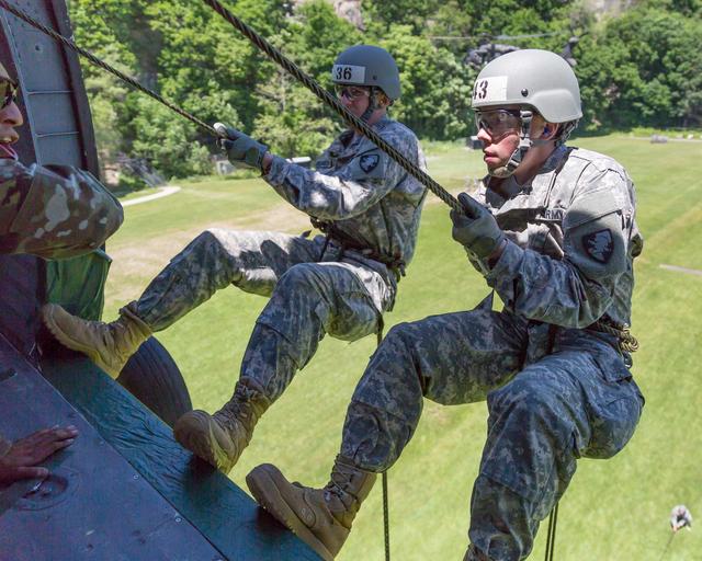 | Keywords: sgt. sgt reginal allison outdoor U.S. Military Academy cadets conduct aircraft rappel training at West Point during the U.S. Army Air Assault Course June 9. A mobile training team from the 101st Airborne Division’s Sabalauski Air Assault School administered the training with flight support from the New Jersey National Guard. (U.S. Army photo by: Staff Sgt. Vito T. Bryant) U.S. Military Academy cadets conduct aircraft rappel training at West Point during the U.S. Army Air Assault Course June 9. A mobile training team from the 101st Airborne Division’s Sabalauski Air Assault School administered the training with flight support from the New Jersey National Guard. (U.S. Army photo by: Staff Sgt. Vito T. Bryant) |