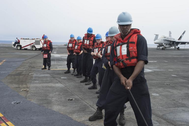 | Keywords: ike cvn 69 cvn69 deployment csg 10 csg10 cvw 3 cvw3 uss dwight d. eisenhower ussdwightdeisenhower aircraft carrier aircraftcarrier inherent resolve inherentresolve atlantic ocean atlanticocean outdoor 160611-N-WC455-077 ATLANTIC OCEAN (June 11, 2016) – Sailors aboard USS Dwight D. Eisenhower (CVN 69) (Ike) handle a phone and distance line as Eisenhower and the fleet replenishment oiler USNS Bighorn (T-AO 198) conduct a replenishment at sea. Ike, the flagship of the Eisenhower Carrier Strike Group, is conducting naval operations in the U.S. 6th Fleet area of operations in support of U.S. national security interests in Europe. (U.S. Navy photo by Mass Communication Specialist Seaman Apprentice Joshua Murray/Released) 160611-N-WC455-077 ATLANTIC OCEAN (June 11, 2016) – Sailors aboard USS Dwight D. Eisenhower (CVN 69) (Ike) handle a phone and distance line as Eisenhower and the fleet replenishment oiler USNS Bighorn (T-AO 198) conduct a replenishment at sea. Ike, the flagship of the Eisenhower Carrier Strike Group, is conducting naval operations in the U.S. 6th Fleet area of operations in support of U.S. national security interests in Europe. (U.S. Navy photo by Mass Communication Specialist Seaman Apprentice Joshua Murray/Released) |