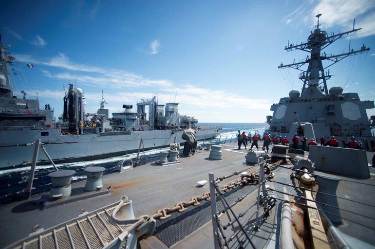 | Keywords: vehicle outdoor road architecture city water waterfront 160615-N-KK394-230 MEDITERRANEAN SEA (June 15, 2016) - The guided-missile destroyer USS Mason (DDG 87) prepares to receive fuel during a replenishment-at-sea with the Italian oiler ITS Etna (A5326). Mason, deployed as part of the Eisenhower Carrier Strike Group, is conducting naval operations in the U.S. 6th Fleet area of operations in support of U.S. national security interests in Europe. (U.S. Navy photo by Mass Communication Specialist 3rd Class Anderson W. Branch/Released) 160615-N-KK394-230 MEDITERRANEAN SEA (June 15, 2016) - The guided-missile destroyer USS Mason (DDG 87) prepares to receive fuel during a replenishment-at-sea with the Italian oiler ITS Etna (A5326). Mason, deployed as part of the Eisenhower Carrier Strike Group, is conducting naval operations in the U.S. 6th Fleet area of operations in support of U.S. national security interests in Europe. (U.S. Navy photo by Mass Communication Specialist 3rd Class Anderson W. Branch/Released) |