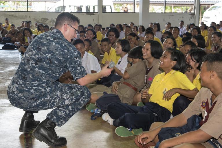 Keywords: 160620-N-OU129-027 160620-N-OU129-144.jpg en 160620-N-OU129-144 SATTAHIP Thailand June 20 2016 Musician 3rd Class Holden Moyer from the 7th Fleet Rock Band Orient Express sings with students during a joint rock concert with the Royal Thai Marine Corps Band at Singsamut School during Cooperation Afloat Readiness and Training CARAT Thailand 2016 CARAT is a series of annual maritime exercises between the U S Navy U S Marine Corps and the armed forces of nine partner nations to include Bangladesh Brunei Cambodia Indonesia Malaysia the Philippines Singapore Thailand and Timor-Leste U S Navy photo by Mass Communication Specialist 2nd Class Joshua Fulton/Released <br>Unit Commander Logistics Group Western Pacific 2016-06-20 Petty Officer 2nd Class Joshua Fulton https //www dvidshub net/image/2673710/160620-n-ou129-027 160620-N-OU129-144 2016-06-20 06 17 TH PD-USGov-Military-Navy Sattahip The Orient Express U S Navy 7th Fleet Band Images from DoD uploaded by Fæ |