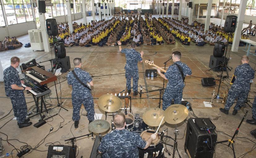Keywords: 160620-N-OU129-135 160620-N-OU129-135.jpg en 160620-N-OU129-135 SATTAHIP Thailand June 20 2016 U S Navy sailors from the 7th Fleet Rock Band Orient Express perform a joint rock concert with the Royal Thai Marine Corps Band at Singsamut School during Cooperation Afloat Readiness and Training CARAT Thailand 2016 CARAT is a series of annual maritime exercises between the U S Navy U S Marine Corps and the armed forces of nine partner nations to include Bangladesh Brunei Cambodia Indonesia Malaysia the Philippines Singapore Thailand and Timor-Leste U S Navy photo by Mass Communication Specialist 2nd Class Joshua Fulton/Released <br>Unit Commander Logistics Group Western Pacific 2016-06-20 Petty Officer 2nd Class Joshua Fulton https //www dvidshub net/image/2673709/160620-n-ou129-135 160620-N-OU129-135 2016-06-20 06 17 TH PD-USGov-Military-Navy Sattahip The Orient Express U S Navy 7th Fleet Band Images from DoD uploaded by Fæ |