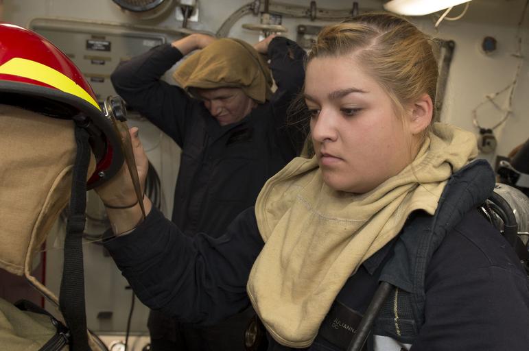 Keywords: uss porter (ddg 78) ussporterddg78 damage control damagecontrol fire fighter firefighter fire fighting gear firefightinggear scba flash gear flashgear u.s. navy usnavy ddg 78 ddg78 uss porter ussporter porter mc3 robert price mc3robertprice people 160624-N-FQ994-007 MEDITERRANEAN SEA (June 24, 2016) Damage Controlman Fireman Julianna Gildea, from South Haven, Michigan, dons firefighting equipment aboard USS Porter (DDG 78) during a damage control training exercise June 24, 2016. Porter, an Arleigh Burke-class guided-missile destroyer, forward-deployed to Rota, Spain, is conducting a routine patrol in the U.S. 6th Fleet area of operations in support of U.S. national security interests in Europe. (U.S. Navy Photo by Mass Communication Specialist 3rd Class Robert S. Price/Released) 160624-N-FQ994-007 MEDITERRANEAN SEA (June 24, 2016) Damage Controlman Fireman Julianna Gildea, from South Haven, Michigan, dons firefighting equipment aboard USS Porter (DDG 78) during a damage control training exercise June 24, 2016. Porter, an Arleigh Burke-class guided-missile destroyer, forward-deployed to Rota, Spain, is conducting a routine patrol in the U.S. 6th Fleet area of operations in support of U.S. national security interests in Europe. (U.S. Navy Photo by Mass Communication Specialist 3rd Class Robert S. Price/Released) |