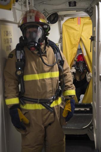 | Keywords: uss porter (ddg 78) ussporterddg78 smoke curtain smokecurtain sailor u.s. navy usnavy ddg 78 ddg78 uss porter ussporter porter mc3 robert price mc3robertprice 160628-N-FQ994-238 MEDITERRANEAN SEA (June 28, 2016) Culinary Specialist Seaman Apprentice Dyllan Beard, from Hickman County, Tennessee, front, and Hull Maintenance Technician 2nd Class Cartier McClure, from Gadsden, Alabama, participate in a damage control training exercise aboard USS Porter (DDG 78) June 28, 2016. Porter, an Arleigh Burke-class guided-missile destroyer, forward-deployed to Rota, Spain, is conducting a routine patrol in the U.S. 6th Fleet area of operations in support of U.S. national security interests in Europe. (U.S. Navy Photo by Mass Communication Specialist 3rd Class Robert S. Price/Released) 160628-N-FQ994-238 MEDITERRANEAN SEA (June 28, 2016) Culinary Specialist Seaman Apprentice Dyllan Beard, from Hickman County, Tennessee, front, and Hull Maintenance Technician 2nd Class Cartier McClure, from Gadsden, Alabama, participate in a damage control training exercise aboard USS Porter (DDG 78) June 28, 2016. Porter, an Arleigh Burke-class guided-missile destroyer, forward-deployed to Rota, Spain, is conducting a routine patrol in the U.S. 6th Fleet area of operations in support of U.S. national security interests in Europe. (U.S. Navy Photo by Mass Communication Specialist 3rd Class Robert S. Price/Released) |