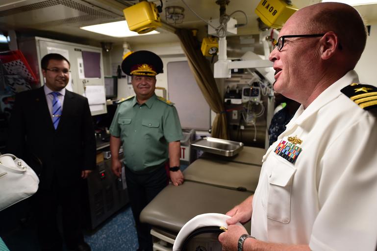 | Keywords: select odesa indoor 160724-N-FP878-107 ODESSA, Ukraine (July 24, 2016) – Cmdr. Russell Caldwell, commanding officer of USS Ross (DDG 71) gives a tour of the ship to foreign dignitaries as part of Sea Breeze 2016 July 24, 2016. Sea Breeze is an air, land and maritime exercise designed to improve maritime safety, security and stability in the Black Sea. (U.S. Navy photo by Mass Communication Specialist 1st Class Theron J. Godbold/Released) 160724-N-FP878-107 ODESSA, Ukraine (July 24, 2016) – Cmdr. Russell Caldwell, commanding officer of USS Ross (DDG 71) gives a tour of the ship to foreign dignitaries as part of Sea Breeze 2016 July 24, 2016. Sea Breeze is an air, land and maritime exercise designed to improve maritime safety, security and stability in the Black Sea. (U.S. Navy photo by Mass Communication Specialist 1st Class Theron J. Godbold/Released) |