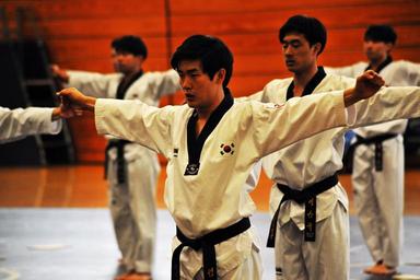 | Keywords: taekwondo u.s. army usarmy u.s. marine corps usmarinecorps u.s. navy usnavy u.s. air force usairforce presidio of monterey presidioofmonterey korea The Kukkiwon Taekwondo Demonstration Team from Korea performed a traditional martial arts demonstration at the Presidio of Monterey, California, Price Fitness Center Aug. 3. The Defense Language Institute Foreign Language Center Korean School hosted the event. Following the demonstration, the team answered questions in Korean for the benefit of the students. Kukkiwon, known as the World Taekwondo Headquarters, is the center of taekwondo culture in Korea with teams touring about 120 countries as ambassadors of the traditional martial art for the past 40 years. (U.S. Army photo by Patrick Bray/Released) The Kukkiwon Taekwondo Demonstration Team from Korea performed a traditional martial arts demonstration at the Presidio of Monterey, California, Price Fitness Center Aug. 3. The Defense Language Institute Foreign Language Center Korean School hosted the event. Following the demonstration, the team answered questions in Korean for the benefit of the students. Kukkiwon, known as the World Taekwondo Headquarters, is the center of taekwondo culture in Korea with teams touring about 120 countries as ambassadors of the traditional martial art for the past 40 years. (U.S. Army photo by Patrick Bray/Released) |