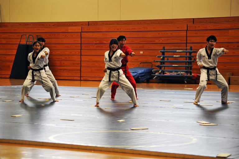 Keywords: taekwondo u.s. army usarmy u.s. marine corps usmarinecorps u.s. navy usnavy u.s. air force usairforce presidio of monterey presidioofmonterey korea court game sport The Kukkiwon Taekwondo Demonstration Team from Korea performed a traditional martial arts demonstration at the Presidio of Monterey, California, Price Fitness Center Aug. 3. The Defense Language Institute Foreign Language Center Korean School hosted the event. Following the demonstration, the team answered questions in Korean for the benefit of the students. Kukkiwon, known as the World Taekwondo Headquarters, is the center of taekwondo culture in Korea with teams touring about 120 countries as ambassadors of the traditional martial art for the past 40 years. (U.S. Army photo by Patrick Bray/Released) The Kukkiwon Taekwondo Demonstration Team from Korea performed a traditional martial arts demonstration at the Presidio of Monterey, California, Price Fitness Center Aug. 3. The Defense Language Institute Foreign Language Center Korean School hosted the event. Following the demonstration, the team answered questions in Korean for the benefit of the students. Kukkiwon, known as the World Taekwondo Headquarters, is the center of taekwondo culture in Korea with teams touring about 120 countries as ambassadors of the traditional martial art for the past 40 years. (U.S. Army photo by Patrick Bray/Released)