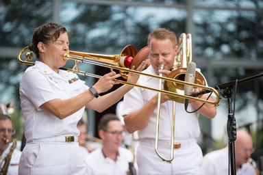 Keywords: red navy navy band navyband commodores u.s. navy band usnavyband u.s. us jazz outdoor 160818-N-VV903-039 Fairfax, Va. (August 18, 2016) Chief Musician Jennifer J. Krupa and Master Chief Musician Matthew Neff trade "fours" in front of the U.S. Navy Band Commodores during an evening concert at the Fairfax County Government Building. Every Monday evening from Memorial Day to Labor Day, units of the U.S. Navy Band units perform throughout the Washington D.C. area as a part of the summer concert series. (U.S. Navy photo by Musician 1st Class David Aspinwall) 160818-N-VV903-039 Fairfax, Va. (August 18, 2016) Chief Musician Jennifer J. Krupa and Master Chief Musician Matthew Neff trade "fours" in front of the U.S. Navy Band Commodores during an evening concert at the Fairfax County Government Building. Every Monday evening from Memorial Day to Labor Day, units of the U.S. Navy Band units perform throughout the Washington D.C. area as a part of the summer concert series. (U.S. Navy photo by Musician 1st Class David Aspinwall) |