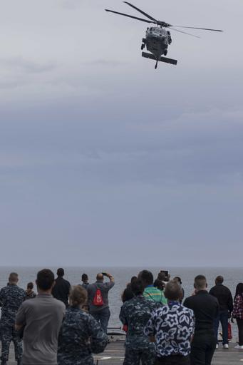 | Keywords: 161001-N-AY374-196 161001-N-AY374-196.jpg en 161001-N-AY374-196 ATLANTIC OCEAN Oct 1 2016 Spectators attending the aircraft carrier USS George Washington CVN 73 friends and family day look on during an air demonstration George Washington is homeported in Norfolk after serving seven years in Yokosuka Japan as the U S Navy's only forward-deployed aircraft carrier U S Navy photo by Petty Officer 3rd Class Jacob Goff Unit Navy Media Content Services DVIDS Tags CVN 73; Friends and Family day; NMCS; USS George Washington; DVIDS Bulk Import 2016-10-01 Petty Officer 3rd Class Jacob Goff https //www dvidshub net/image/2896127/161001-n-ay374-196 161001-N-AY374-196 2016-10-04 00 34 PD-USGov-Military-Navy USS George Washington CVN-73 Images from DoD uploaded by Fæ |