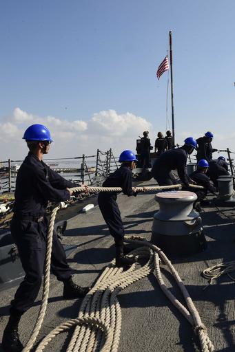 MAKE A MEME View Large Image Sailors heave on a mooring line as USS Ross (DDG 71) pulls into Larnaca, Cyprus Oct. 07, 2016. Ross, an Arleigh Burke-class guided-missile destroyer, forward-deployed to Rota, Spain, is conducting naval operations in the U.S. 6th Fleet Area ...