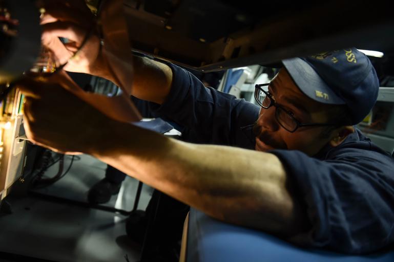 | Keywords: navy uss ross (ddg 71) ussrossddg71 ddg 71 ddg71 u.s. 6th fleet us6thfleet c6f ctf 65 ctf65 patrol larnaca cyprus larnacacyprus 161008-N-FP878-005 LARNACA, Cyprus (Oct. 8, 2016) Petty Officer 2nd Class Robert Monahanbarnes from Clermont, Fla., troubleshoots a console in the combat information center aboard USS Ross (DDG 71) Oct. 8, 2016. Ross, an Arleigh Burke-class guided-missile destroyer, forward-deployed to Rota, Spain, is conducting naval operations in the U.S. 6th Fleet Area of Operations in support of U.S. national security interests in Europe and Africa. (U.S. Navy photo by Petty Officer 1st Class Theron J. Godbold/Released) 161008-N-FP878-005 LARNACA, Cyprus (Oct. 8, 2016) Petty Officer 2nd Class Robert Monahanbarnes from Clermont, Fla., troubleshoots a console in the combat information center aboard USS Ross (DDG 71) Oct. 8, 2016. Ross, an Arleigh Burke-class guided-missile destroyer, forward-deployed to Rota, Spain, is conducting naval operations in the U.S. 6th Fleet Area of Operations in support of U.S. national security interests in Europe and Africa. (U.S. Navy photo by Petty Officer 1st Class Theron J. Godbold/Released) |