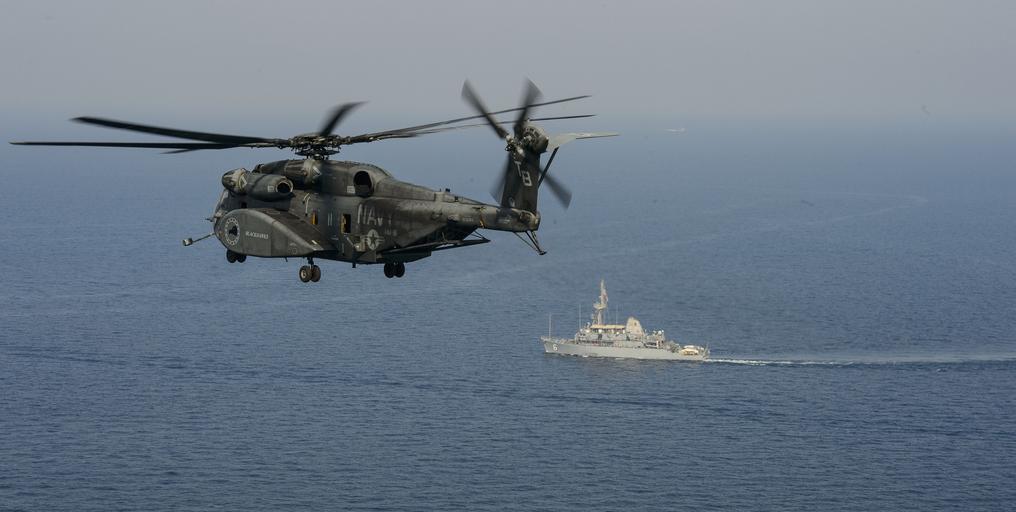 | Keywords: hm-15 hm15 desert hawks deserthawks 53 ctf 53 ctf53 aircrew bahrain norfolk mine counter measure squadron minecountermeasuresquadron logistics outdoor vehicle aircraft 161003-N-RZ218-0570- A MH-53E Sea Dragon assigned to âDesert Hawksâ of Helicopter Mine Counter Measure Squadron HM-15, starts to maneuver into position with ships from Commander, Task Force, 52 off the coast of Bahrain October 19th, 2016. Hm-15 is a Forward Deployed Naval Force asset attached to Commander, Task Force 53 to provide combat logistics and search and rescue capability throughout the U.S. 5th fleet area of responsibility. (U.S. Navy Combat Camera photo by Petty Officer 2nd Class John Paul Kotara II) 161003-N-RZ218-0570- A MH-53E Sea Dragon assigned to âDesert Hawksâ of Helicopter Mine Counter Measure Squadron HM-15, starts to maneuver into position with ships from Commander, Task Force, 52 off the coast of Bahrain October 19th, 2016. Hm-15 is a Forward Deployed Naval Force asset attached to Commander, Task Force 53 to provide combat logistics and search and rescue capability throughout the U.S. 5th fleet area of responsibility. (U.S. Navy Combat Camera photo by Petty Officer 2nd Class John Paul Kotara II) |