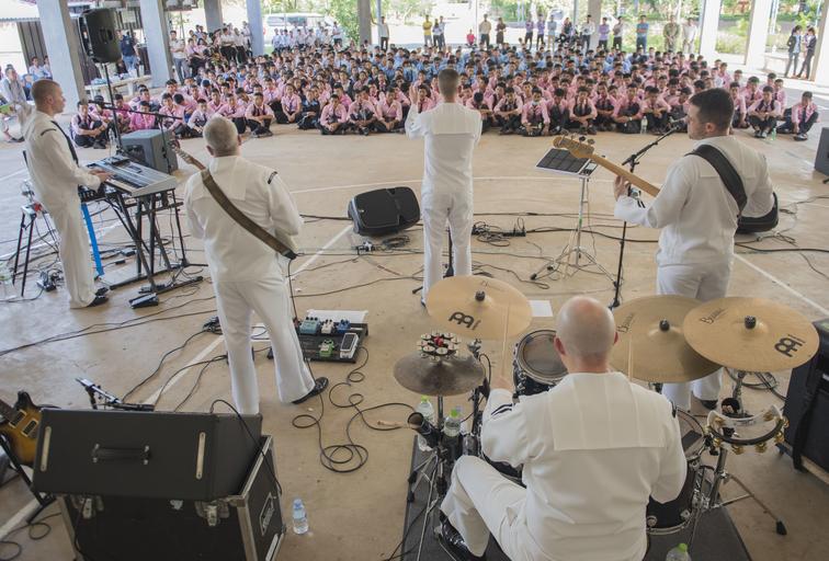 Keywords: 161101-N-OU129-126 161101-N-OU129-126.jpg en 161101-N-OU129-126 SIHANOUKVILLE Cambodia Oct 31 2016 The US 7th Fleet Band Orient Express performs a variety of music during a concert at Don Bosco Technical School during Cooperation Afloat Readiness and Training CARAT Cambodia 2016 CARAT is a series of annual maritime exercises between the U S Navy U S Marine Corps and the armed forces of nine partner nations to include Bangladesh Brunei Cambodia Indonesia Malaysia the Philippines Singapore Thailand and Timor-Leste U S Navy photo by Mass Communication Specialist 2nd Class Joshua Fulton/Released <br>Unit Commander Logistics Group Western Pacific 2016-11-01 Petty Officer 2nd Class Joshua Fulton https //www dvidshub net/image/2960834/161101-n-ou129-126 161101-N-OU129-126 2016-11-01 11 43 KH PD-USGov-Military-Navy The Orient Express U S Navy 7th Fleet Band Images from DoD uploaded by Fæ |