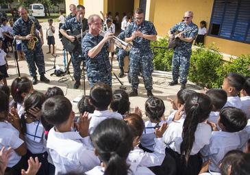 Keywords: 161102-N-OU129-140 161102-N-OU129-140.jpg en 161102-N-OU129-140 SIHANOUKVILLE Cambodia Nov 2 2016 The US 7th Fleet Band Orient Express perform a variety of music during a concert at Ream Primary School during Cooperation Afloat Readiness and Training CARAT Cambodia 2016 CARAT is a series of annual maritime exercises between the U S Navy U S Marine Corps and the armed forces of nine partner nations to include Bangladesh Brunei Cambodia Indonesia Malaysia the Philippines Singapore Thailand and Timor-Leste U S Navy photo by Petty Officer 2nd Class Joshua Fulton/Released <br>Unit Commander Logistics Group Western Pacific 2016-11-02 Petty Officer 2nd Class Joshua Fulton https //www dvidshub net/image/2963271/161102-n-ou129-140 161102-N-OU129-140 2016-11-02 11 59 KH PD-USGov-Military-Navy The Orient Express U S Navy 7th Fleet Band Images from DoD uploaded by Fæ |