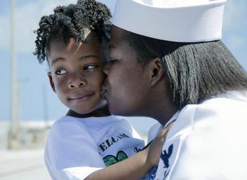 Keywords: frank cable frankcable as40 deployment guam underway returning shift colors shiftcolors first line firstline manning the rails manningtherails dress whites dresswhites sailors sumarine tender sumarinetender alana langdon alanalangdon s40mc homecoming santa rita santarita 161108-N-DA434-195 SANTA RITA, Guam (Nov. 8, 2016) Petty Officer 1st Class Ashley Johnson, from Chicago, assigned to the submarine tender USS Frank Cable (AS 40) kisses her daughter after returning to Naval Base Guam after completing a five-month deployment. Frank Cable departed Guam June 6, was a persistent presence throughout the Indo-Asia-Pacific region during its deployment providing vital flexibility to the fleet commanders, extending the range and impact of U.S. naval forces in the U.S. Navy's 5th and 7th Fleets. Forward deployed to Guam, Frank Cable's combined Navy and Military Sealift Command crew's mission is to provide critical war fighting repairs, rearmament and reprovisioning to deployed Naval Forces of the United States. (U.S. Navy photo by Seaman Alana Langdon/Released) 161108-N-DA434-195 SANTA RITA, Guam (Nov. 8, 2016) Petty Officer 1st Class Ashley Johnson, from Chicago, assigned to the submarine tender USS Frank Cable (AS 40) kisses her daughter after returning to Naval Base Guam after completing a five-month deployment. Frank Cable departed Guam June 6, was a persistent presence throughout the Indo-Asia-Pacific region during its deployment providing vital flexibility to the fleet commanders, extending the range and impact of U.S. naval forces in the U.S. Navy's 5th and 7th Fleets. Forward deployed to Guam, Frank Cable's combined Navy and Military Sealift Command crew's mission is to provide critical war fighting repairs, rearmament and reprovisioning to deployed Naval Forces of the United States. (U.S. Navy photo by Seaman Alana Langdon/Released) |