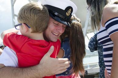Keywords: frank cable frankcable as40 deployment guam underway returning shift colors shiftcolors first line firstline manning the rails manningtherails dress whites dresswhites sailors sumarine tender sumarinetender alana langdon alanalangdon s40mc homecoming SANTA RITA, Guam (Nov. 8, 2016) Chief Petty Officer Justin Burke, a native of Edgewater, Md., assigned to the submarine tender USS Frank Cable (AS 40) embraces his family for the first time, after completing a five-month deployment. Frank Cable departed Guam June 6, was a persistent presence throughout the Indo-Asia-Pacific region during its deployment providing vital flexibility to the fleet commanders, extending the range and impact of U.S. naval forces in the U.S. Navy's 5th and 7th Fleets. Forward deployed to Guam, Frank Cable's combined Navy and Military Sealift Command crew's mission is to provide critical war fighting repairs, rearmament and reprovisioning to deployed Naval Forces of the United States. (U.S. Navy photo by Seaman Alana Langdon/Released) SANTA RITA, Guam (Nov. 8, 2016) Chief Petty Officer Justin Burke, a native of Edgewater, Md., assigned to the submarine tender USS Frank Cable (AS 40) embraces his family for the first time, after completing a five-month deployment. Frank Cable departed Guam June 6, was a persistent presence throughout the Indo-Asia-Pacific region during its deployment providing vital flexibility to the fleet commanders, extending the range and impact of U.S. naval forces in the U.S. Navy's 5th and 7th Fleets. Forward deployed to Guam, Frank Cable's combined Navy and Military Sealift Command crew's mission is to provide critical war fighting repairs, rearmament and reprovisioning to deployed Naval Forces of the United States. (U.S. Navy photo by Seaman Alana Langdon/Released) |